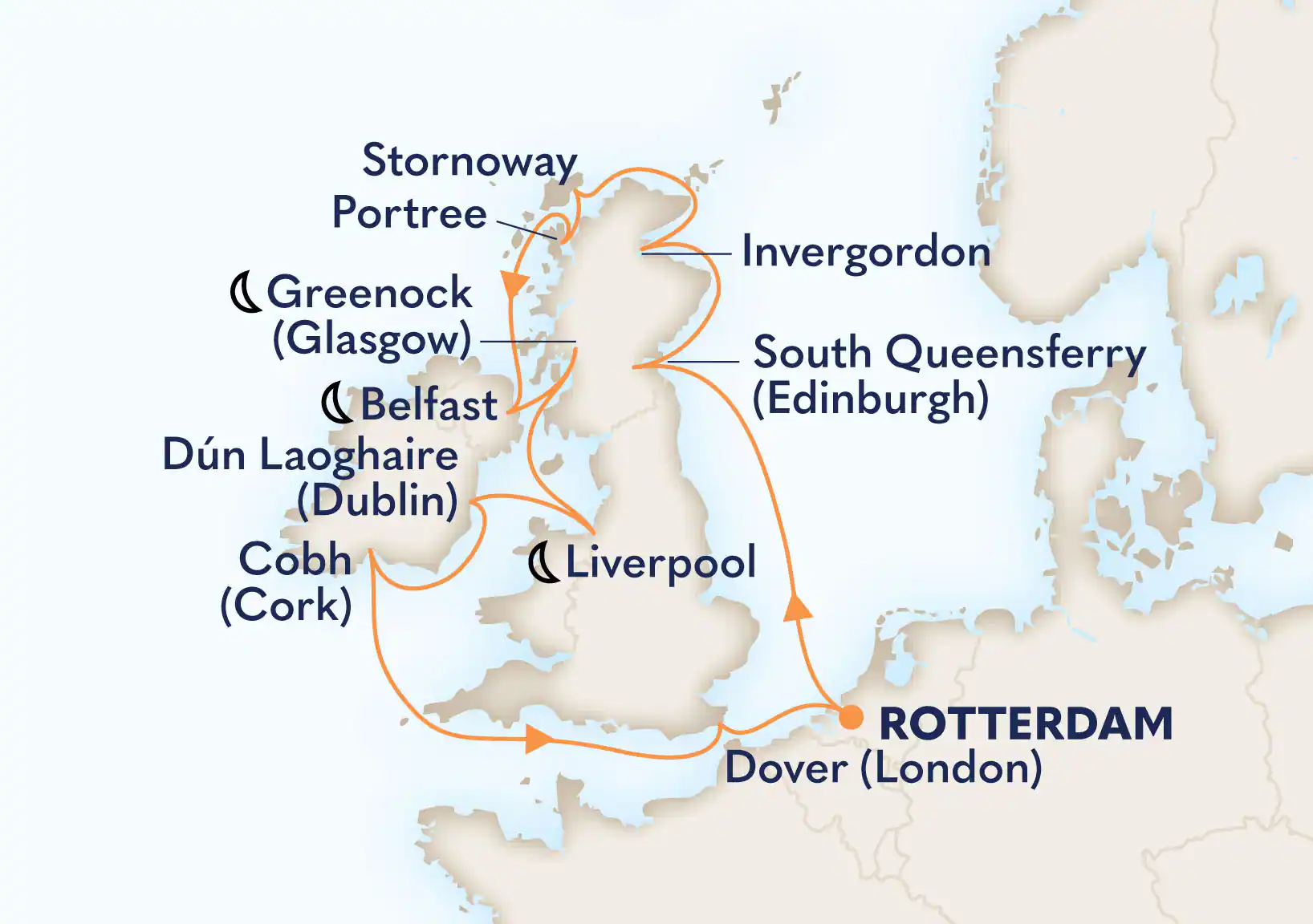 | 8. | Greenock (Škótsko, Spojené kráľovstvo) | 08:00 | 23:00 |